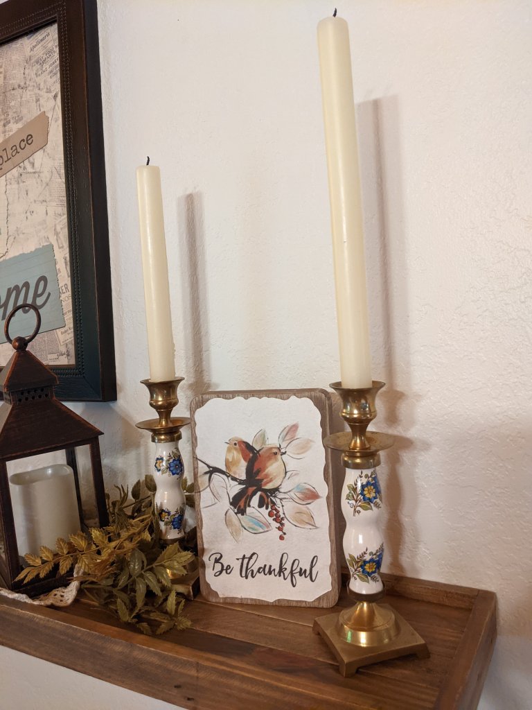 This is to show you that beautiful fall ambience can be had for pennies. Thrifting is a wonderful thing. I’ll admit I’ve been shamelessly grabbing every nice taper holder I see. I did share with Francis last weekend because I’m a good mom like that. Besides she’s the one that showed me how to do this.