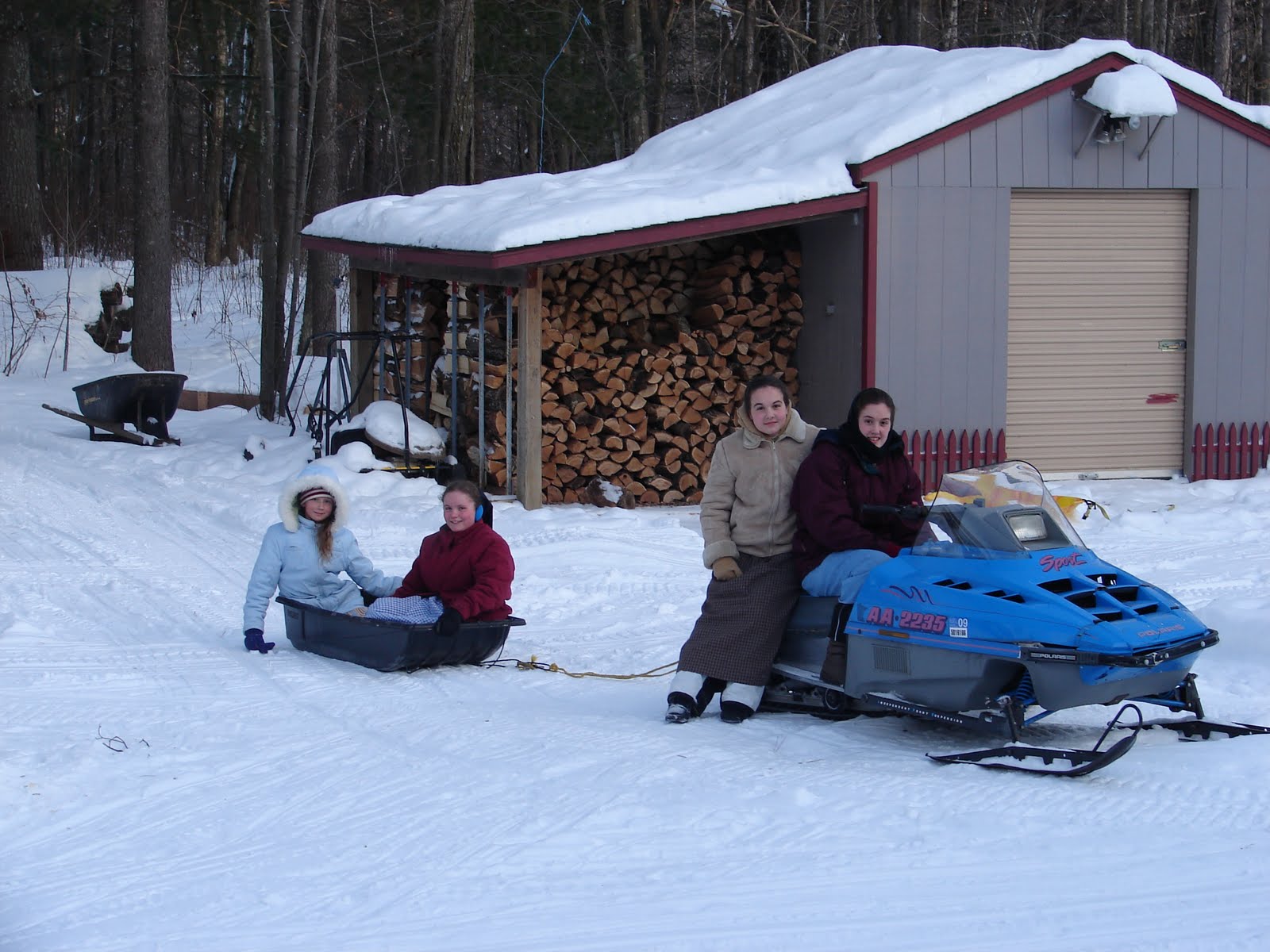 The children  enjoyed snowmobile play with friends while their mothers did more scrap-booking.