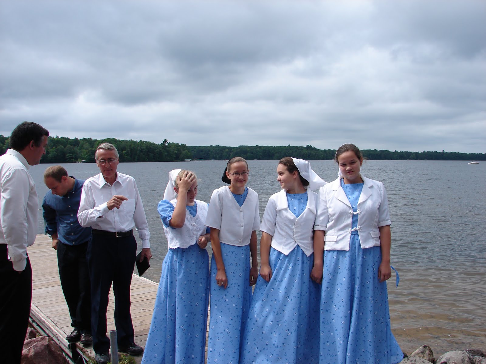 Sunday, Amy was baptized along with three other young ladies. The singing was rather enthusiastic and the “house was full” at church on Sunday. My mom and Aunt Pearl thought the singing was too loud, but I heard a few others say that they enjoyed it. We went to the boat landing where the four girls were immersed/baptized. It was a beautiful day, perfect for the outward sign of an inward cleansing.