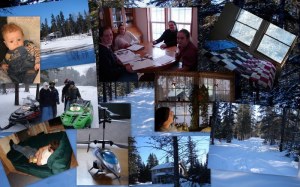 By noon or so Elv and I dressed in our warmest winter togs and headed down the trail away from the cabin to visit our friends the Lattins. Herb has been sick for three weeks with dizziness pinning him to his bed and chair, so we were there to give them a Sunday fellowship. The trail was a foot path broken through two feet of snow. The trees were sugar coated with snow, and the sun gave color and depth to every animal track and over every surface flat or drifted. As we walked away from the cabin we both turned and looked back to see what our current shelter looked like in winter against the spruces and snow. Lovely! …