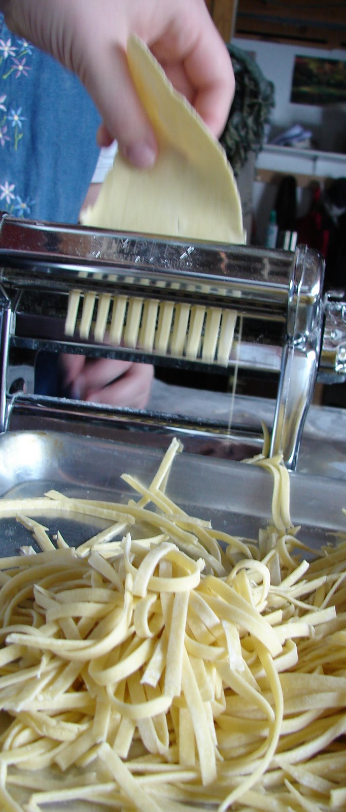 Making noodles seems so ridiculously easy and they are so yummy I have to wonder why we haven’t done this before.  We will now have noodles in the pantry which is new for us. (We haven’t had boughten noodles for years, since we don’t appreciate them.)