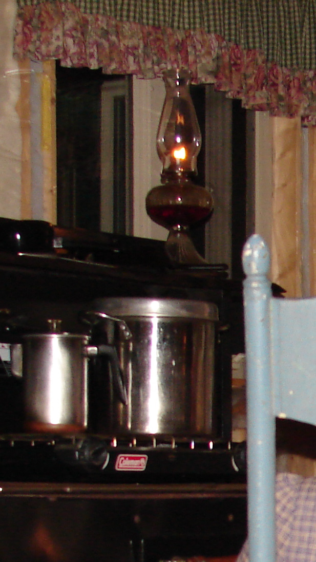 We enjoy using the oil lamps for lighting after dark.