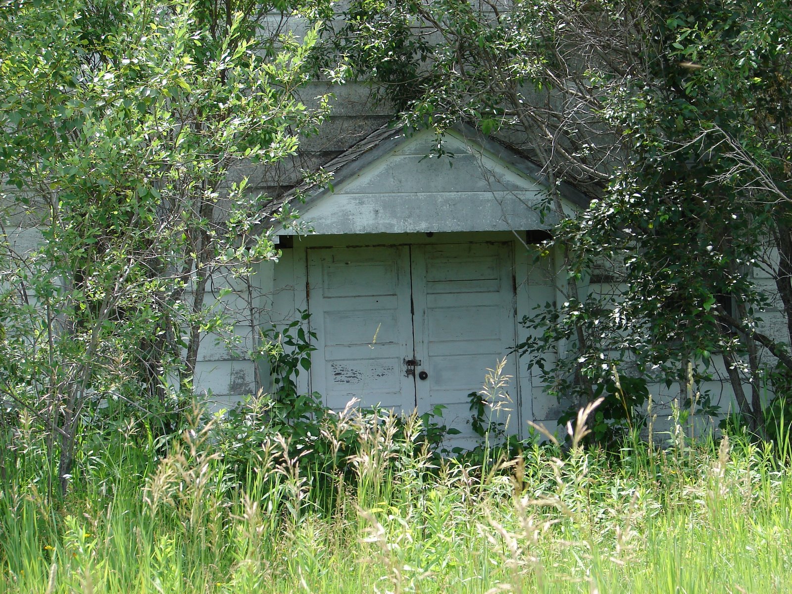 It’s the little Mennonite Church in Graceton, Minnesota.  The doors have been closed for  years now and the grass and brush are taking over. Never again will the bees buzz outside the screens and the thunder and whistle of the train be heard during the preaching of the Word. “My Jesus I Love Thee” will never again be sung within those walls.  No more swinging bare feet patiently waiting in the hush of quiet for dismissal. No  children will run about in the sandy parking lot after church while the moms and dads visit. The little church stands alone, slowly receding into the overgrowth.