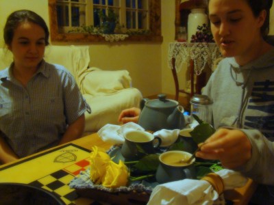 Tea by the hearth after dark. The perfect way to celebrate a good day’s work outside doing spring clean up.