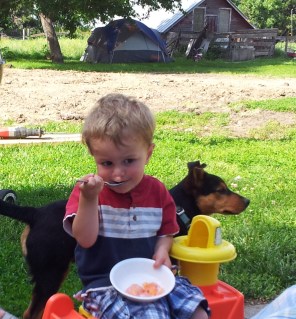 We had an ice cream/sherbet break at one point. Here is Myles, the two year old in the family at the Burkey’s.