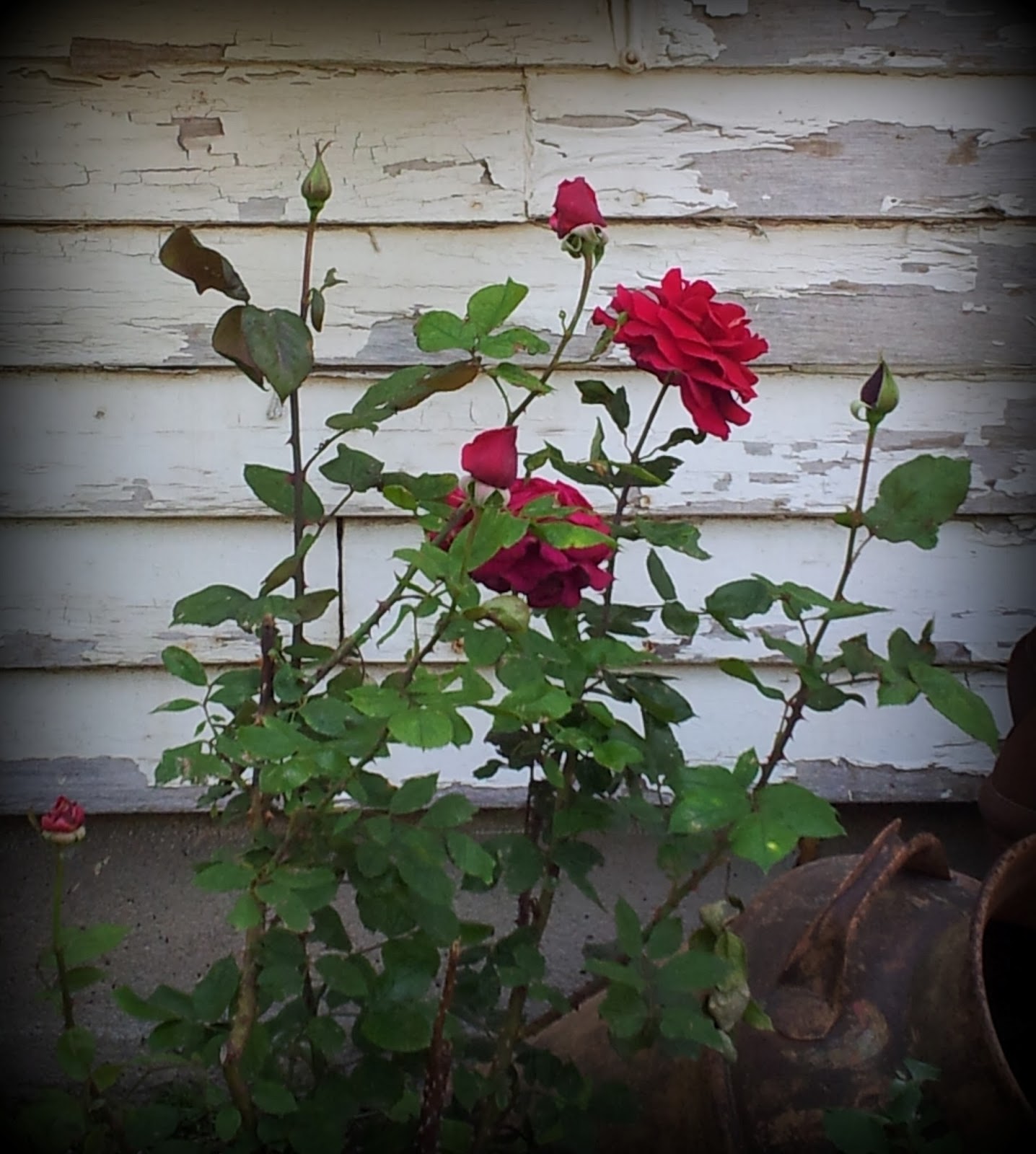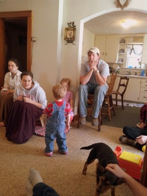 Here we are sitting and visiting between projects in the middle room in the old house. The current puppy, Mocha, would not be left out.