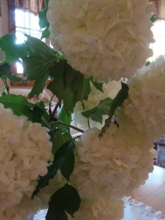 Margie has a lovely snowball bush right now loaded with these beauties. I begged a bouquet and have been enjoying it on the coffee table.