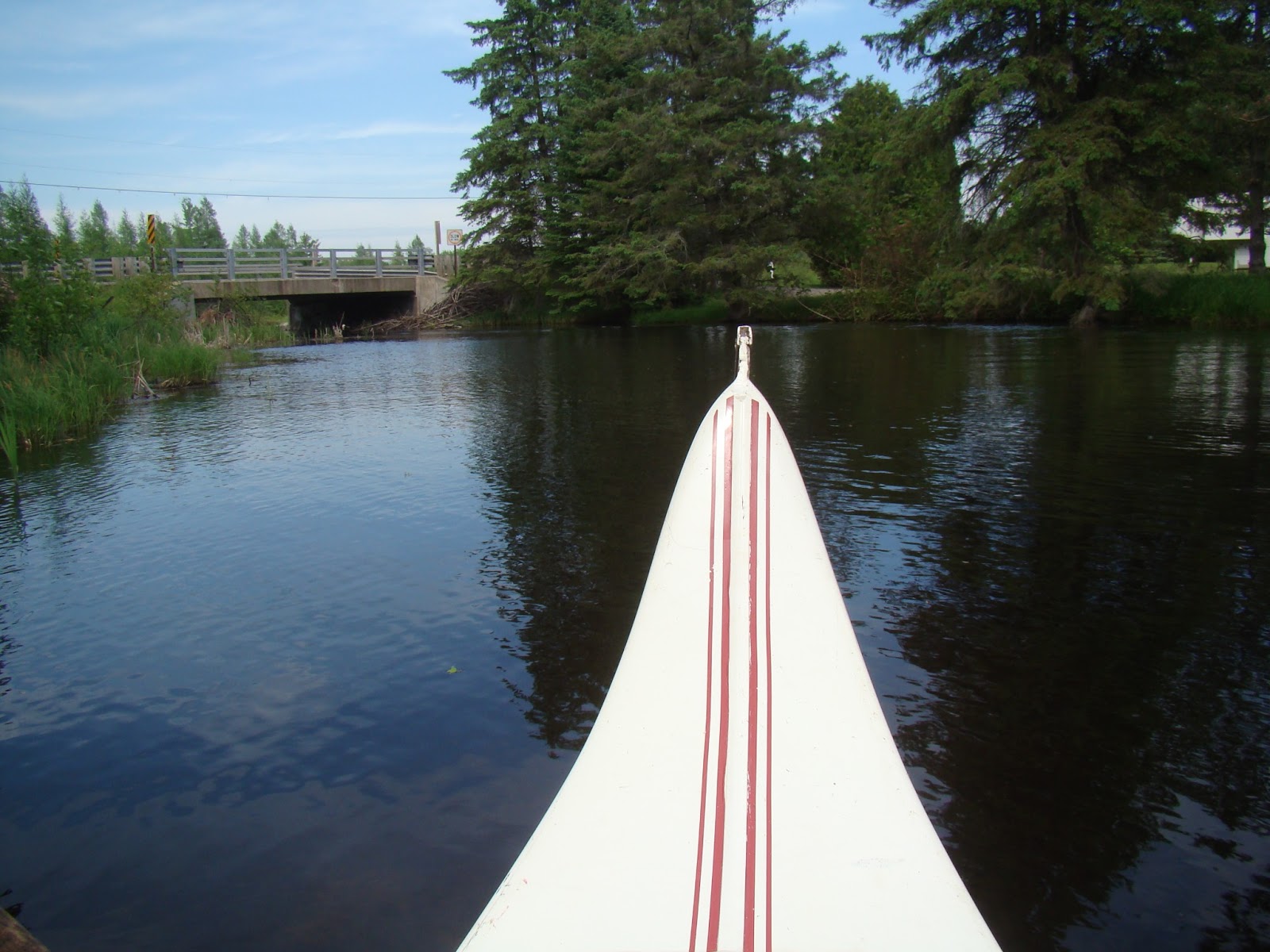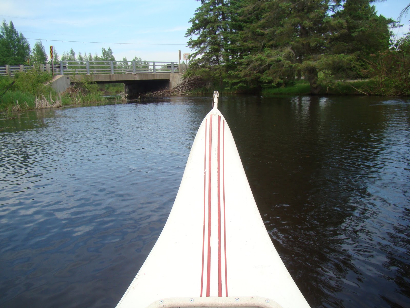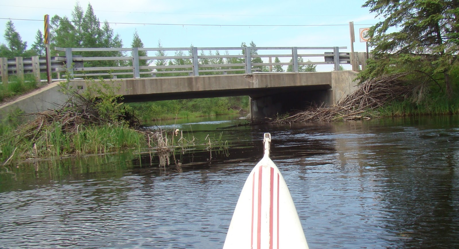 Even with the water being up, the beaver are still not quite satisfied and work diligently to create a dam under the bridge. We waited on the other side on our way back as a group of folks on a pontoon boat realized this and were obliged to turn around. They had to make a three point turn to get around in the narrow water way. Finally headed in the right direction back to Lake Couderay the man at the wheel apologized to us, “And we’re not even tourists.” We were laughing already anyway, so it was kind of him to give us permission.