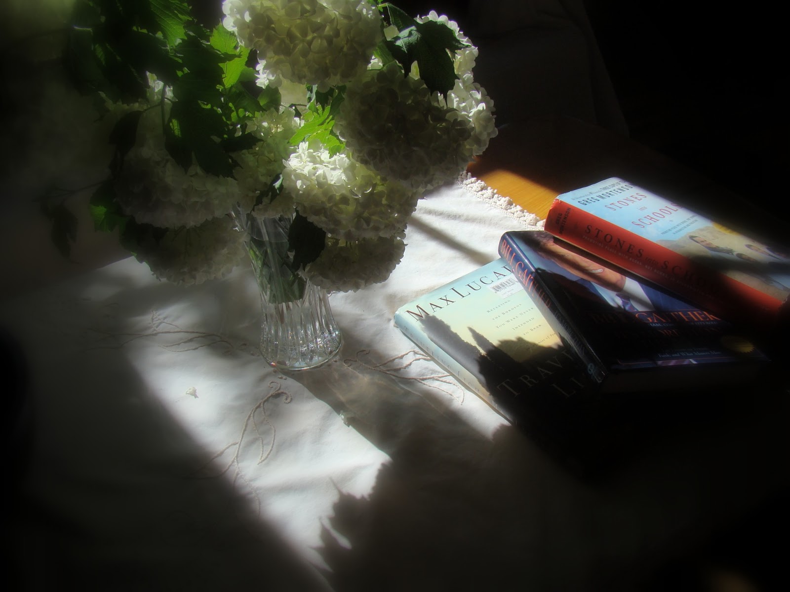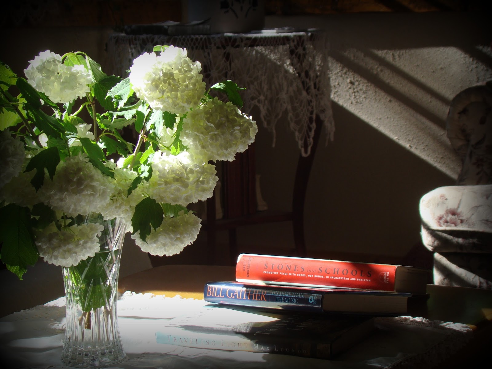 I found these books at the used shop this week: Stones Into School by Greg Mortensen, It’s More Than The Music by Bill Gaither, and Traveling Light by Max Lucado.  Reading all three at once.
