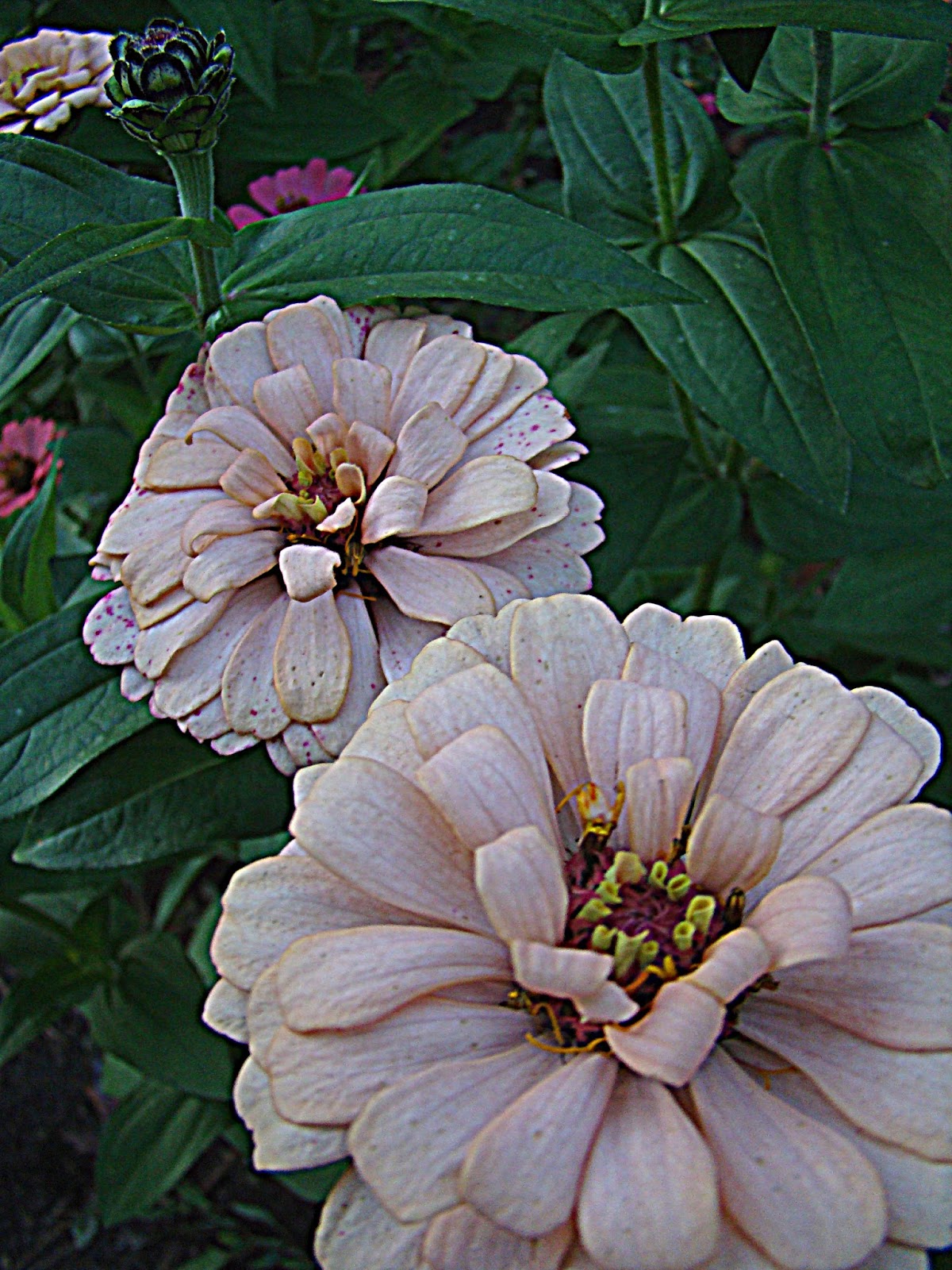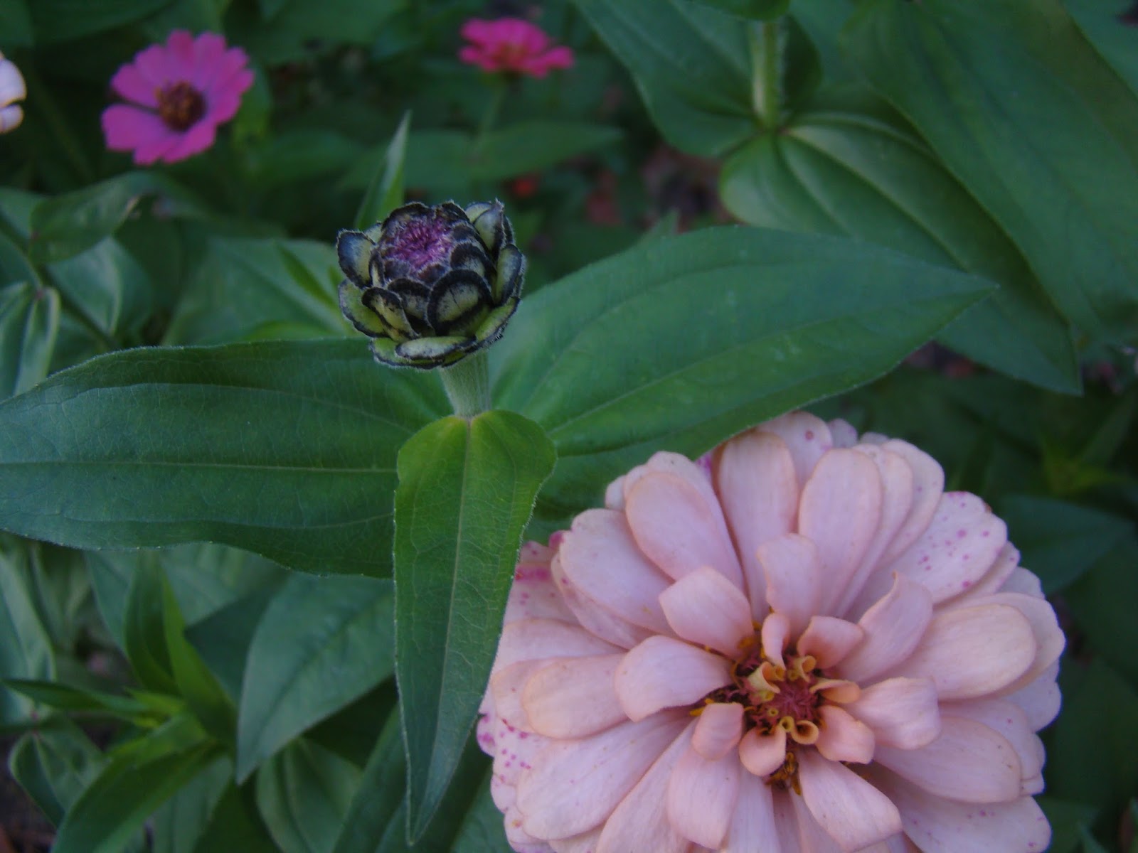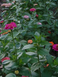 The zinnia took many weeks to begin to flower for us due to greedy little rabbits. Lance eliminated one of them for me one evening when he was out and about with his not-so-little pistol. No place to target practice here in the village until the little rabbit showed up. I walked down the bean row and herded it toward Lance and then when he said, “Get out of the way,” I fled and he shot it. Did I say all this before?