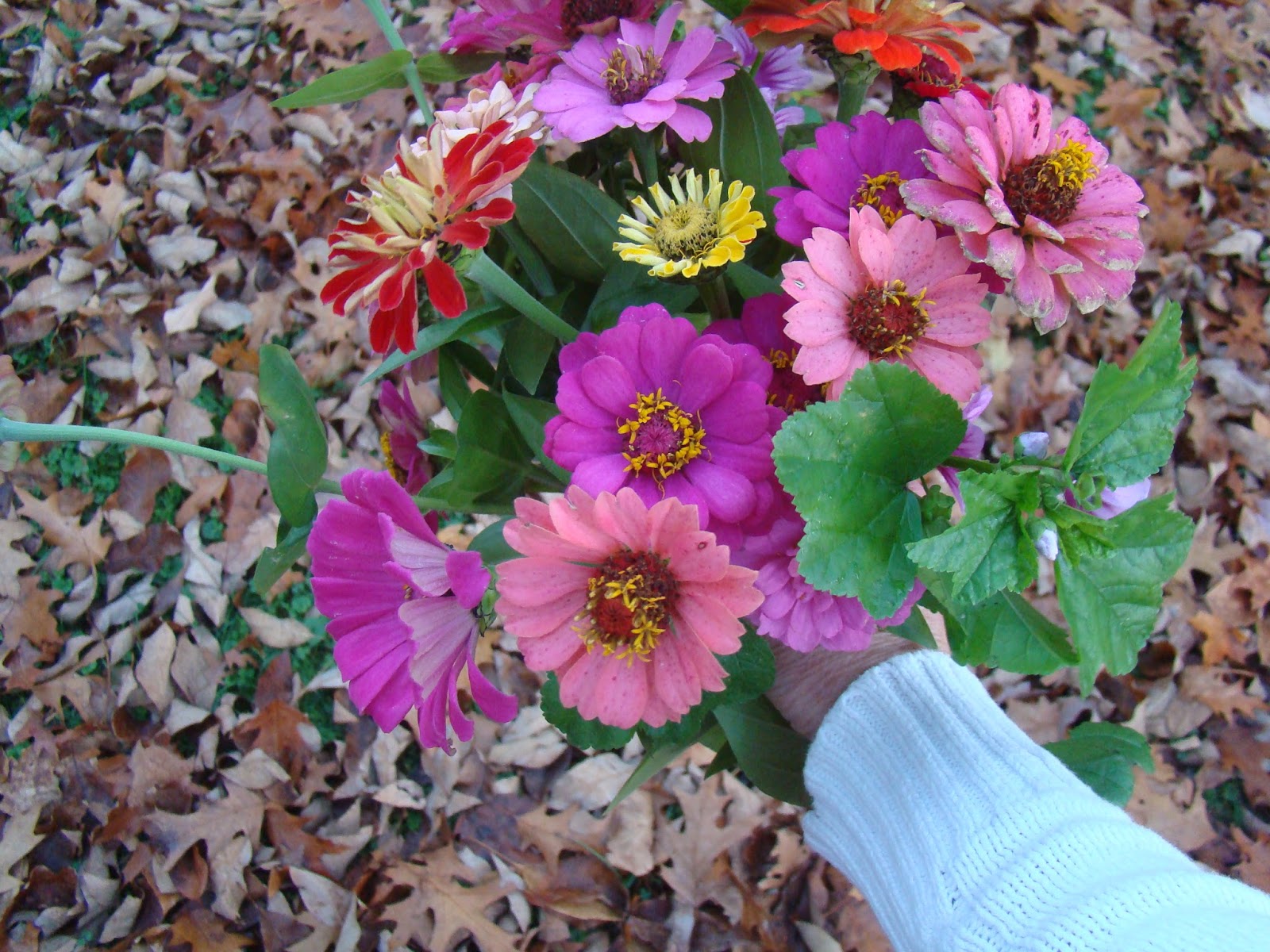 Autumn in Wisconsin has been beautiful again this year. Warm days and plenty of color. The flowers and crops in the garden held on without a killing frost till the middle of October. Bouquets kept coming in for our table.
