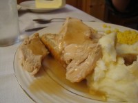 And mashed potatoes, Mennostyle. (Creamed to a spotless white and smooth perfection with little a cream cheese and a lot of butter.) None of your lumpy, grey looking brown speckled mashed potatoes of Perkins or the like, for us, thank you.