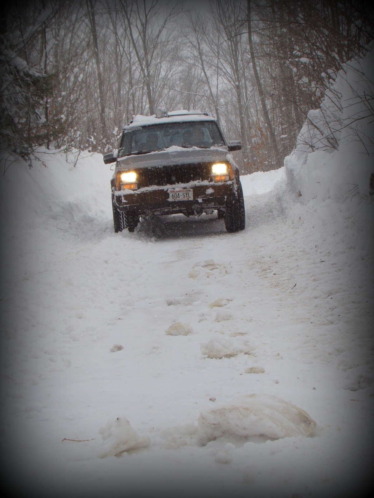 Here we come, driving on Lance’s freshly plowed woods trail. Beloved Jeep, getting us through to any and all of our adventures in the woods.