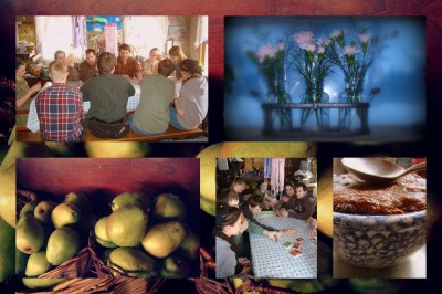 Someone made a wonderful dish of GF pasta just for me for Sunday lunch. I had to take a few pictures of the wonderful vignette that Susan knows how to create here and there in their home in the woods.