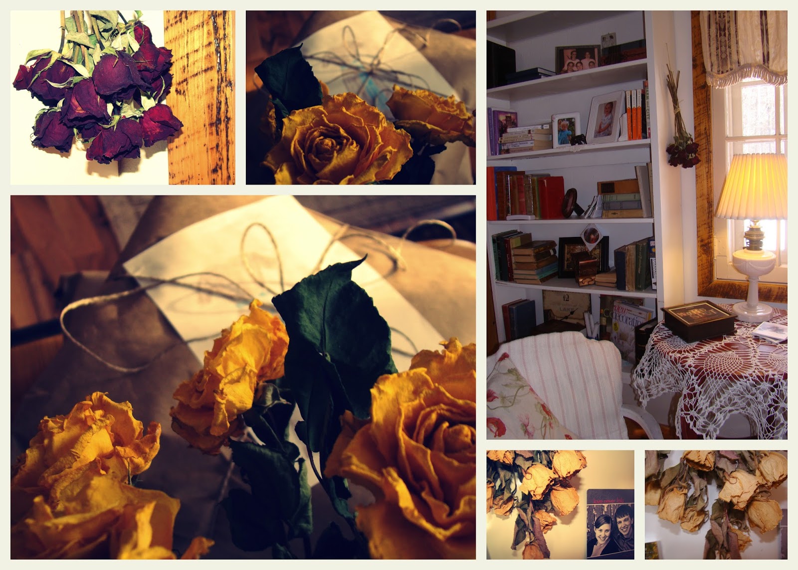 Finally we “tipped” them, which means that we hung them upside down to dry. This is just as nice for enjoying as is the fresh flowers stage. It takes four or five days to dry completely depending on how dry is the air. With the wood stove still in use around the clock we struggle to keep enough moisture in the air so our roses dry quickly and