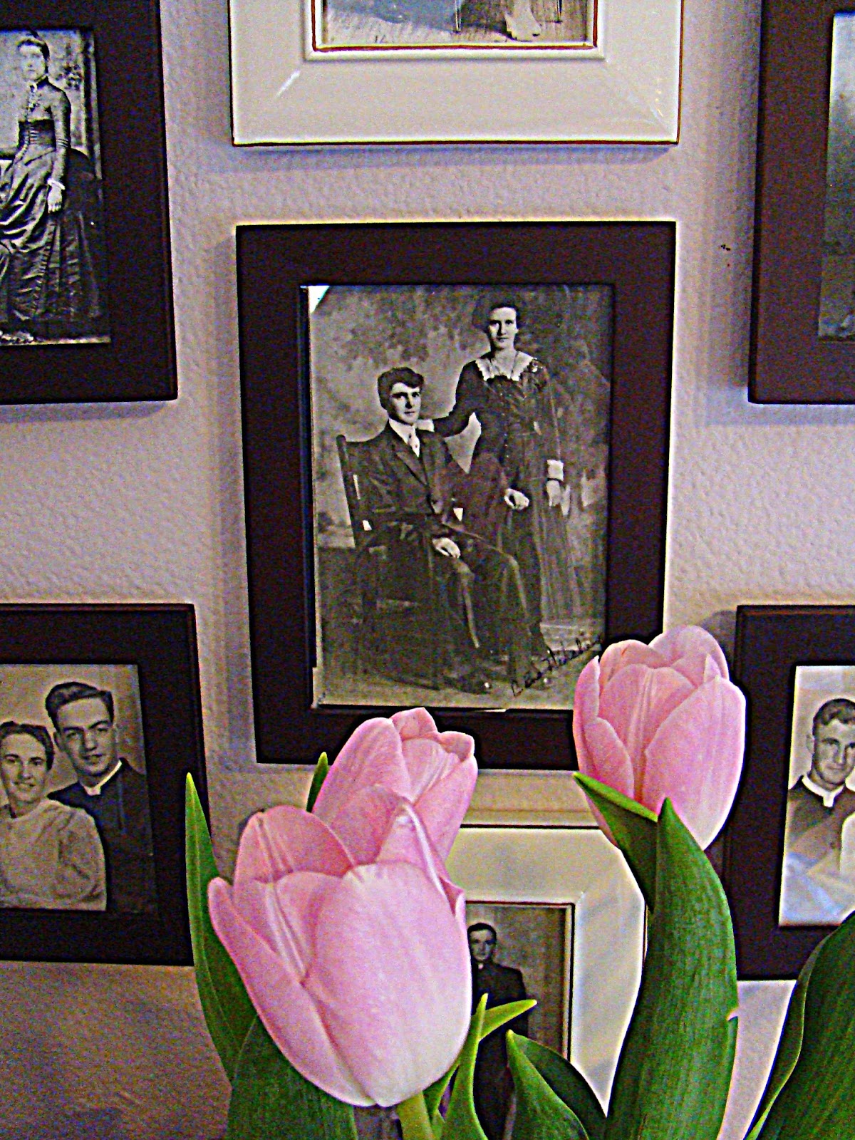 Mom has a wall collage of wedding portraits of all the ancestors in our family. I stand there during every visit just looking at them. Every couple has a story. A good biographer could do a series of books and carry along a main thread of family, home, and commitment in marriage. The stories of service in war, the days of The Depression, the elopement of a couple of teenagers, the lives of two different children raised as only children, homesteading stories, triumphs and losses really need to be recorded.
