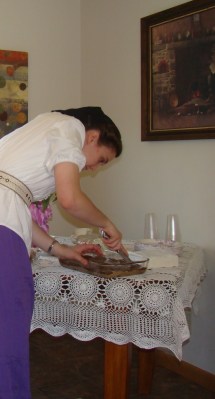The cucumber dish was Danae's creation. Danae? And we divided into five teams and made one list per team of what was in everyone's purses. We should have had a prize for the team with the most variety/items non-duplicate. It was amazing what we had on our lists, believe me.
