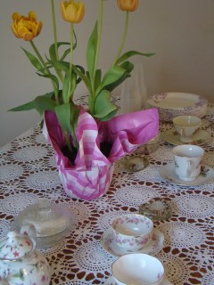 Flowers, sunshine, lace, tea, dainty food, gifts, mints, and loved ones gathering. Gladys had a speech/devotional for us and Lisl initiated a game of What Do You Have In Your Purse that was quite hilarious. Francis has been properly showered upon by now!