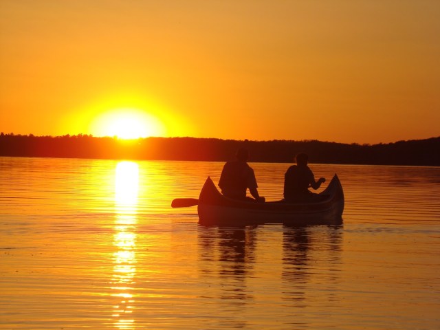 Josh and Frank canoeing off into the sunset. It was an awesome evening on the lake. Loons, a pair of herons, ducks, the soothing blues of the water, and the setting sun. Lovely intermission.