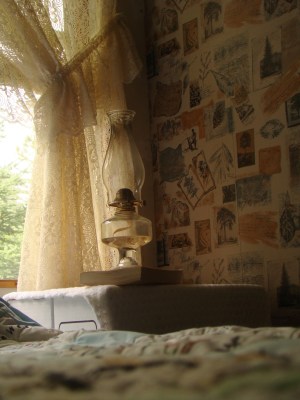 We took off right after church Sunday in Lance’s pickup for the cabin: the dog, our overnight bags, a cooler of food, and the camera. Due to Amy’s diligence and skillful home keeping we found the cabin “pretty” and nice.