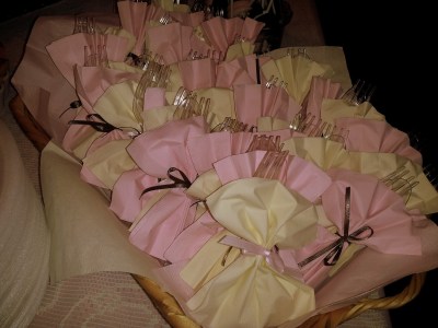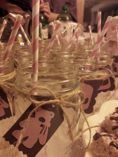 Susan and her daughters created and gave the most lovely baby shower party for Carolyn and Kathryn last week. Perfection of pink and cream and brown in every possible way: drinking mugs, napkins, cake, confections, and a banner. Lovely.