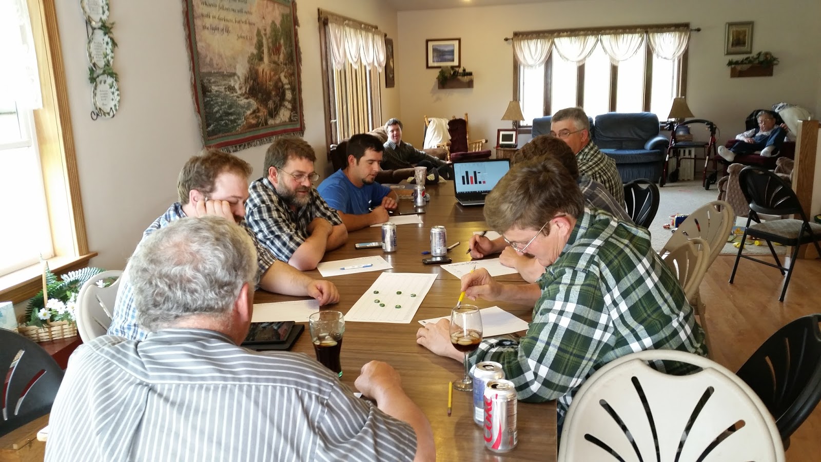 The guys played Stock Ticker, what else?, while we sorted.