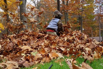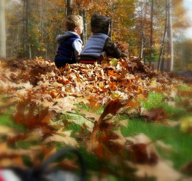 It isn’t necessary to explain to a child what there is to do with a pile of leaves. I caught more than one picture of only feet showing at the top of the pile, for instance. I didn’t go under there myself to prove this, but it seemed like they weren’t at all claustrophobic about being able to breathe under there. Imagine the smell of dry, oak leaves on damp grass, mice and moles, and lawn mower leavings.