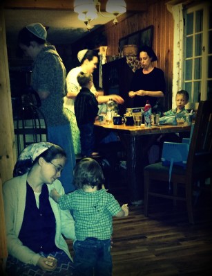 A glimpse into Sunday evening at home while everybody was here the other weekend. On the menu were those little pig-in-a-blanket snacks of a mini hot-dogs individually rolled in it’s own blanket of dough and baked. The girls moved the prep operation out to the dining room table for space to work and immediately had three or four little people asking to get involved. All of our girls are patient with this sort of thing so the little hands were allowed to roll dough and “help”. What amazes me anew is that it is truly helpful in the end.