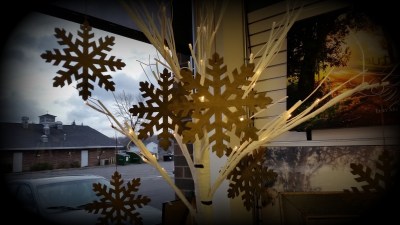 st1\:*{behavior:url(#ieooui) } <![endif]–>See this silly, little tree? I unboxed this at the Duluth store yesterday. Couldn’t believe my eyes! How simple this would be do make at home. Also in the same box were six packs of wooden snowflake ornaments that looked great on the tree. Plugged it in and sat it in the window. Lovely! I’m still considering how I can duplicate this for pennies. Don’t tell our costumers, please.