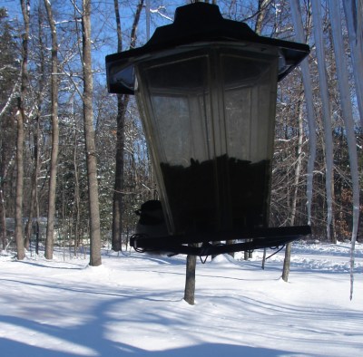 And warm inside. Here’s our fireside on a cold evening. All of my homemaking finesse finds a different place to live in the winter… not by the fireside. Three unmatched catch rugs: coals, firewood chips/dust/dirt, and the door mat. Cords, in a living room with only two electrical receptacles, and the important fan, finish off our winter cabin decor wonderfully. It’s cold outside! When the stove is keeping our house warm in sub-zero weather, we don’t mind this mess. We rather enjoy it even though it requires a daily vacuum so that we aren’t wading in it and dragging it all over the house.