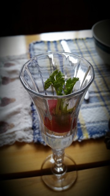Here’s a chance for the rest of you to laugh at me, too, like Amy is. About my precious, little radish green. I don’t mind the schputting. When I saw those green, curly leaves I couldn’t resist. They’re growing quickly… an inch in 12 hours easily.