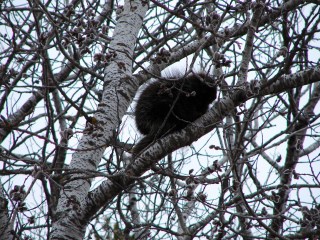 Sunday, about noon Susan and I took the four-wheeler out through Joshua road’s mud and ice to the car parked on high ground and headed toward Walker, Minnesota. We had 3 1/2 hours of driving and plenty of visiting to do so it was perfect. The only thing we really saw all the way over was a porcupine high up in an aspen tree by the road. We actually stopped. Susan said Abram would want to see a picture of it. So.