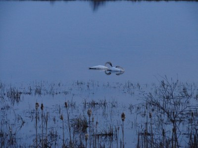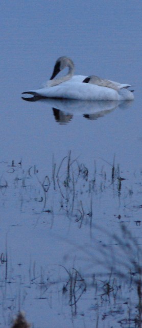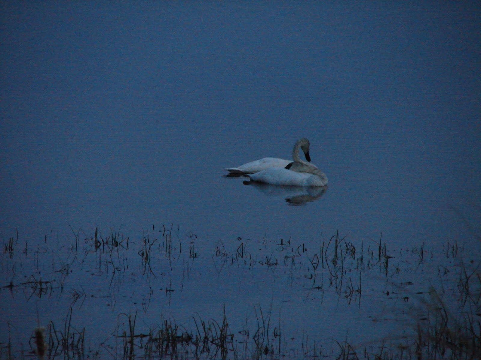 Watching wildlife requires patience and quiet. But we know how to do that. It is rewarding, too. A pair of swans was turning in for the night right below our picnic spot after supper.