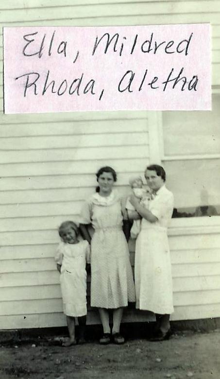 The Martin reunion is ten days away and I am still laboring on a picture presentation. We’ve been collecting pictures such as these. Take a good look, if you know Aletha Martin Kauffman and her three sisters, Mildred, Ella, and Rhoda. This is a sister group, yes.