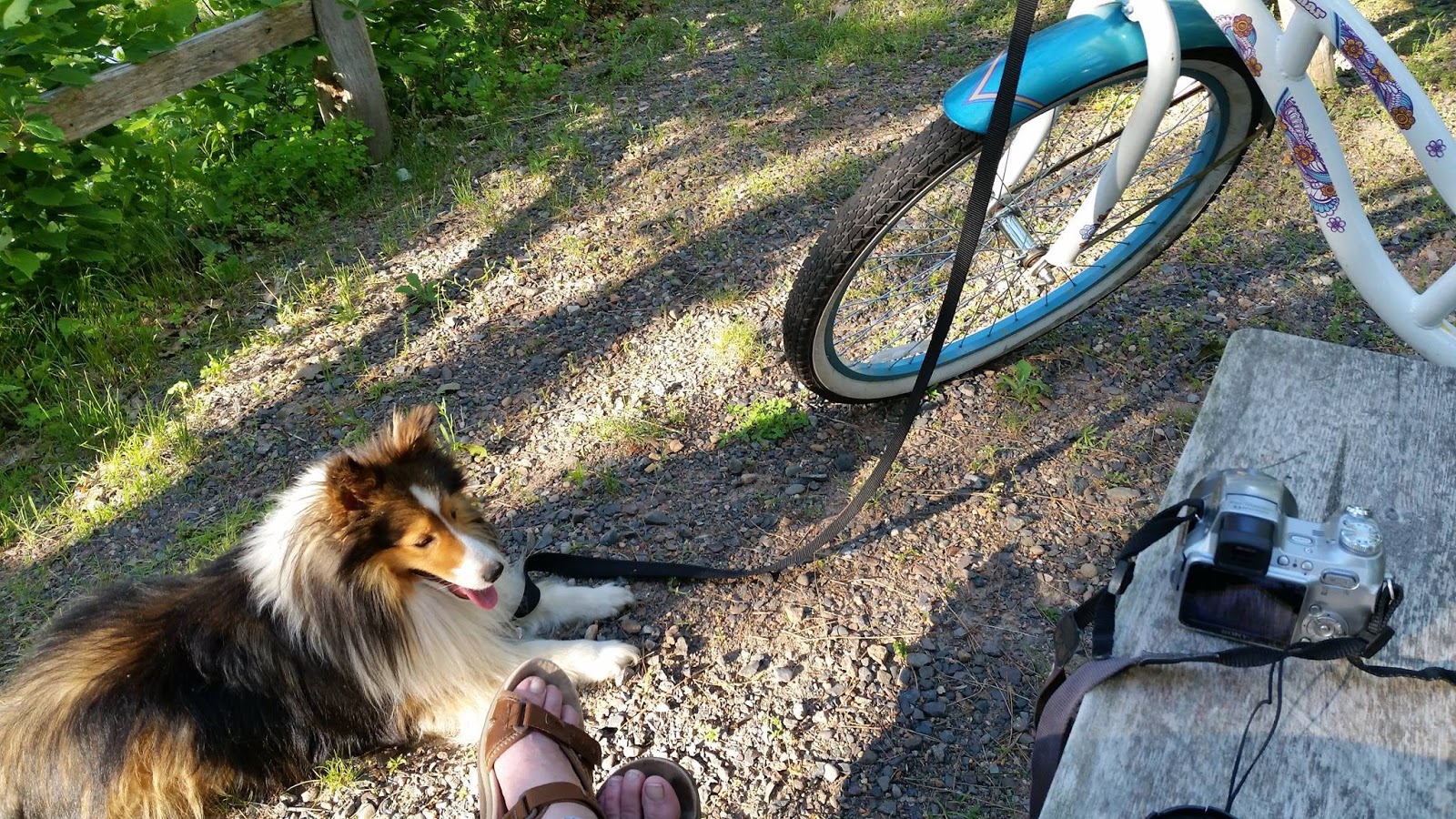 On another idyllic evening when I was home alone, because everyone else was at a meeting or VBS, I took the dog on a bike ride. 🙂 Actually he ran alongside my bike, his leash in my hand. Any dashes he tried to make for something more interesting were short lived because me and my bike and our momentum are bigger than his small brained ideas to the contrary. I almost ran over him only once when he failed to anticipate our turning into a side street. I pulled him aside with his leash and all’s well that ends well. Now we know that it can be done.