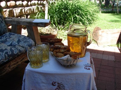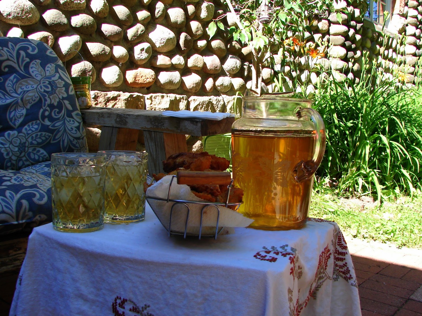I found a pack of pan fish fillets in the fridge freezer. The last of our catches from last summer.We had fish for supper. On the patio. And iced tea.