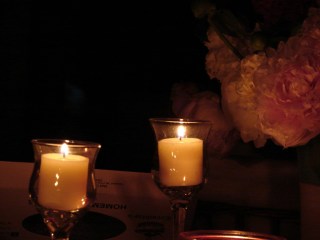 So I sat in my corner and read a book by candle light. Then became distracted by the beauty the candlelight made for me. So I fetched my camera to try to capture it. The peony flowers are entrancing in this light. Had I realized that the white in the background was a box of large and luscious chocolates, they would have been turned for the camera to catch as such and I would have had an additional happy distraction.