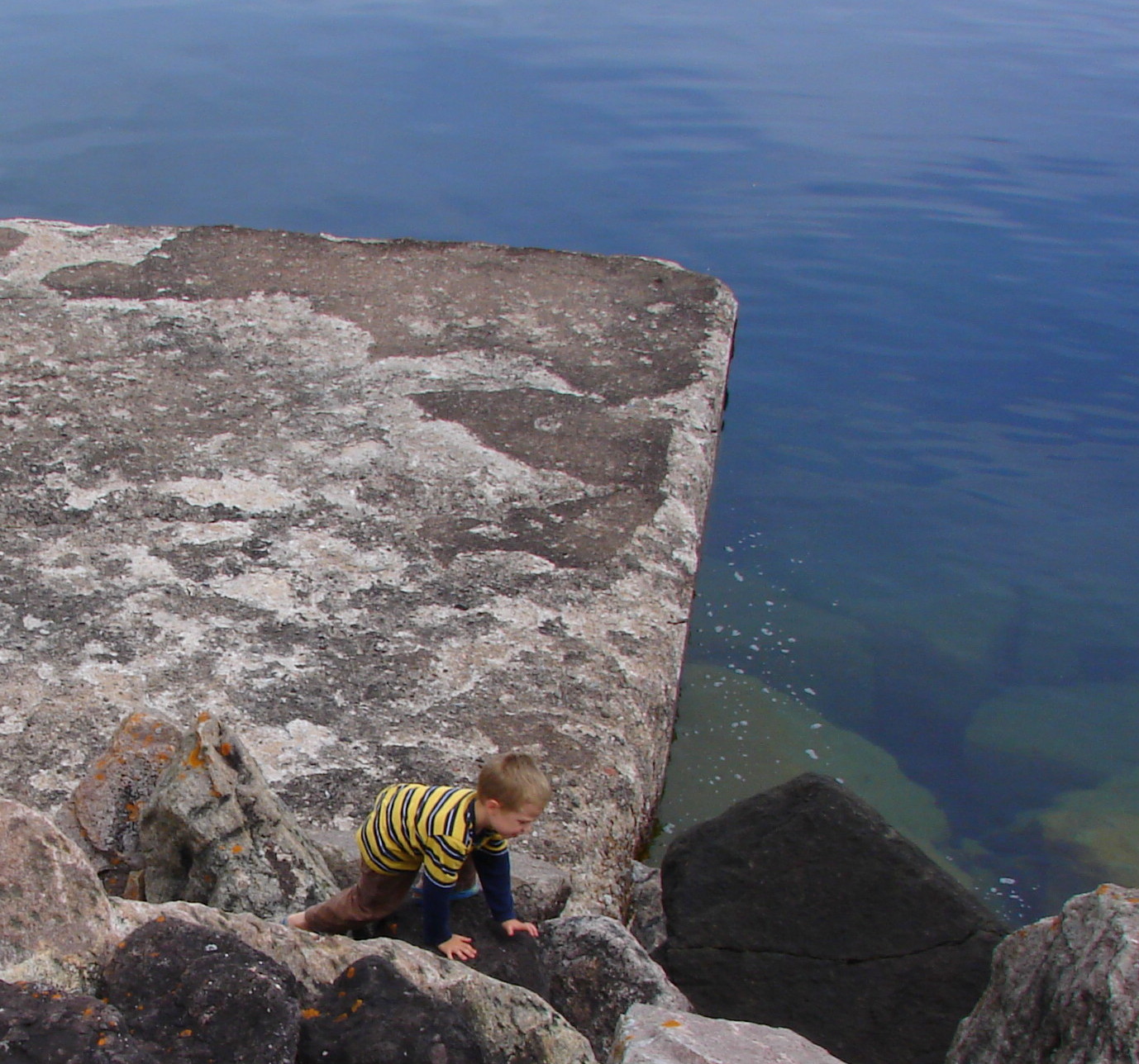 All the beaches were plugged with people. All the “kid friendly” beaches, that is. Benny and Asher and Elv were pretty frantic to get their feet in the water. But we either had huge rocks dropping off into deep water or we had people. Finally Clark’s gave up on us being together on the beach and headed down the shore and eventually found a spot for the boys to play.