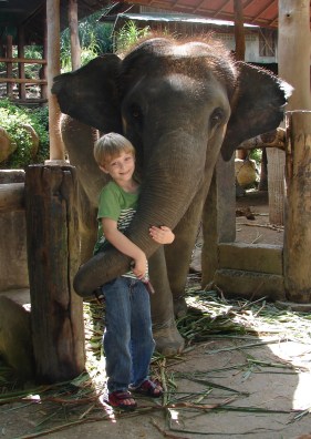 The last day in Thailand, while Dru finished up last minute errands, Lisl took the rest of us up to the elephant camp. I suppose this will be one of the highlights of our trip. We almost didn’t go, since Dru couldn’t, but they had promised Havilah a ride with Grandpa on the elephant before leaving the country and so we did.