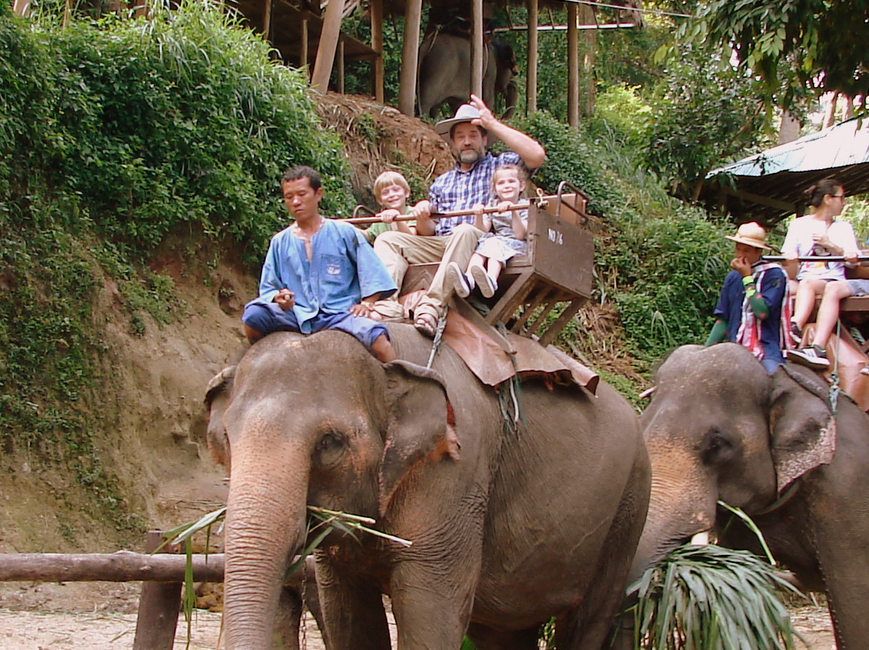 The last day in Thailand, while Dru finished up last minute errands, Lisl took the rest of us up to the elephant camp. I suppose this will be one of the highlights of our trip. We almost didn’t go, since Dru couldn’t, but they had promised Havilah a ride with Grandpa on the elephant before leaving the country and so we did.