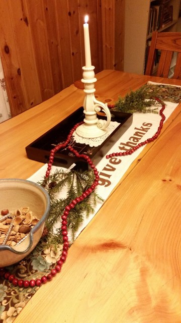 We have begun to decorate for the Holidays. I want to keep it simple and homey as much as possible this year. It is a great opportunity to vacuum up the rather prolific spiders and their messes, too. So corner by corner, little by little we shall have a clean house again.
