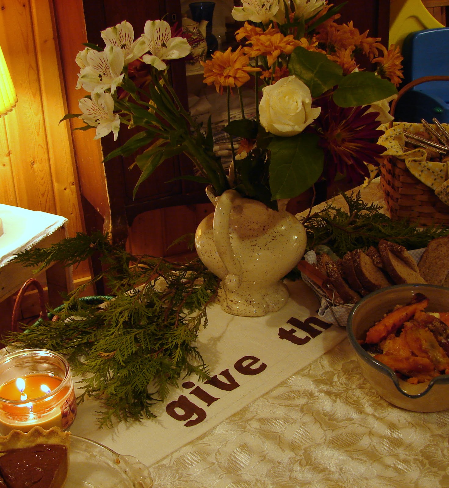 Josh and Francis and Anne came from Nebraska to spend the holiday with family. They and Lance’s were here at our house for Thanksgiving Day proper. All the pictures I tried to get of our loaded, pretty tables are blurred. It’s a disaster directly proportional to the wonderful day we had together. So it’s all fine. I promise to not be too lazy to set up the tripod for Christmas.