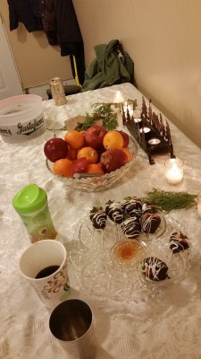 Elv and I got a new log bed from where I work. And a new wood rack for the living room fireplace. And we all received most of what we’d had on our lists. We have few needs and fewer wishes, I guess. Happy times.
