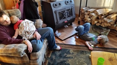Clark had the stove “lit” for coziness.
