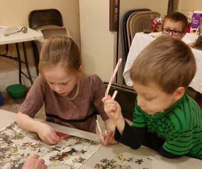 There was room for coloring, and puzzle piecing, and board games, and children play all at once.