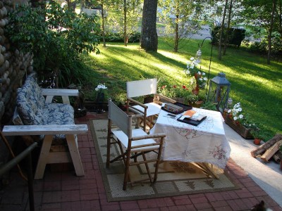 We are especially enjoying the patio this summer. With lots of rain, a little effort, new ideas, and the privacy our bigger trees provide it seems extra nice.