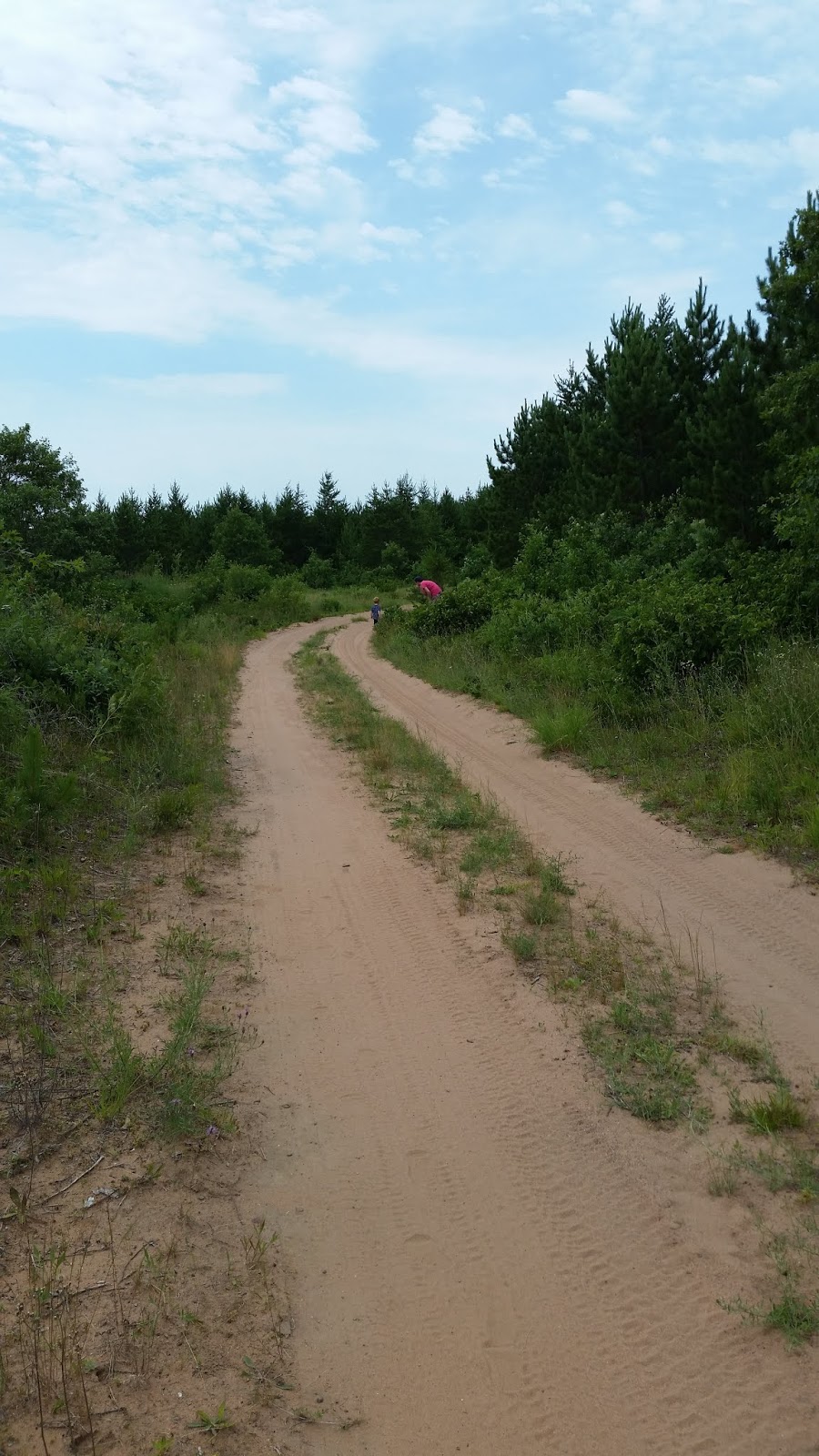 But mostly we picked berries staying within yelling distance of each other, keeping our bearings by the sand road nearby where the Jeep was parked.