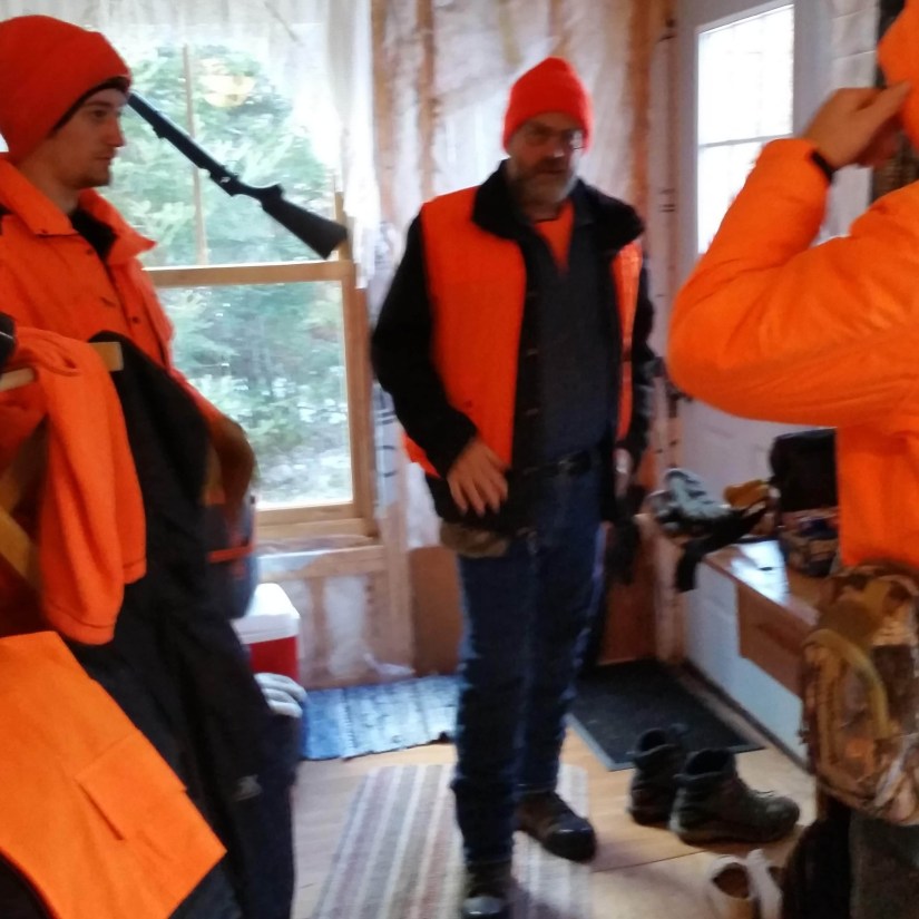 The guys saw deer the first day. But not having any meat to bring home didn’t keep them from having all the fun of the hunt. With maps, GPS apps, orange, muzzle loaders apiece, the paraphernalia pertaining to northwoods hunting including boots, numerous coats, gloves, orange vests, and over-alls. Somebody stepped across the little creek at the bottom of the cabin lawn and missed, twice. Hunting clothes hung drying everywhere: on the rack and over chairs pulled up to the stove so that we could hardly walk. Boots. Guns in corners.