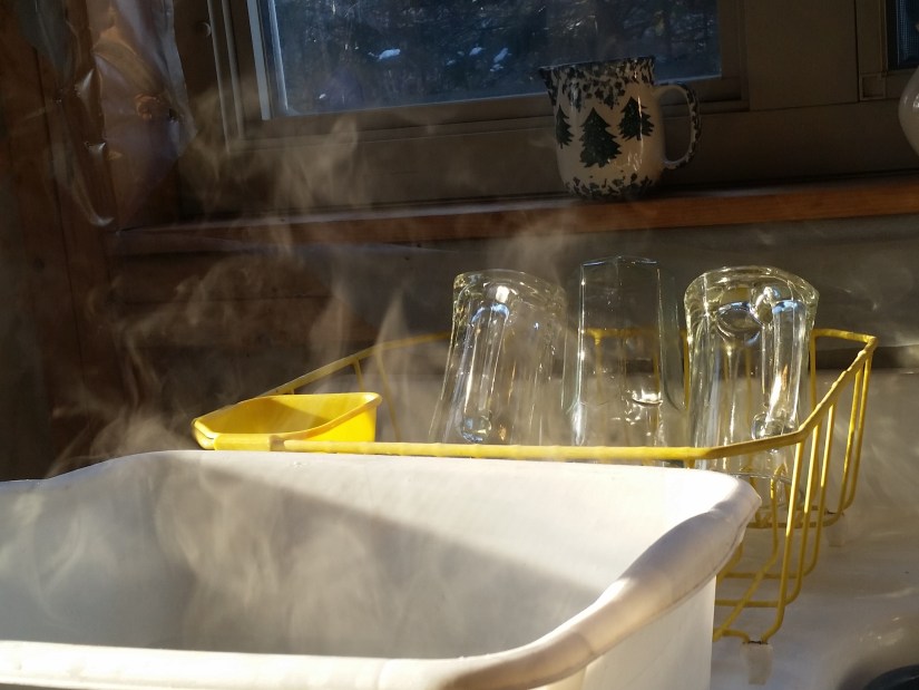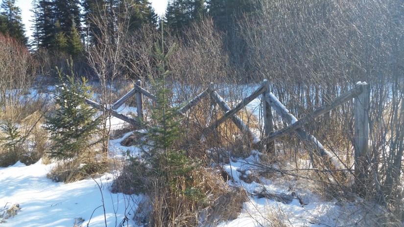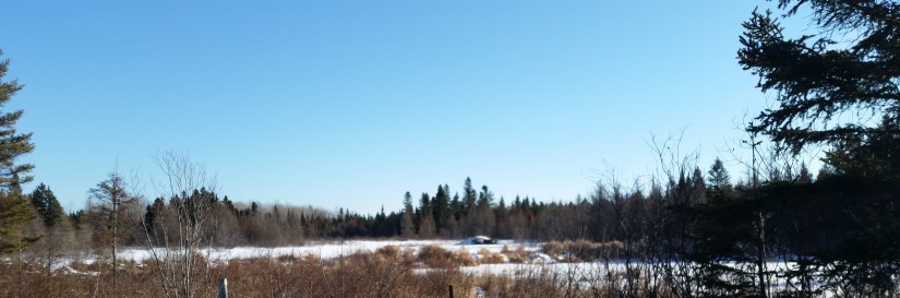 One thing we did was to take a walk in the woods. We had gone up to the cabin for the last day of hunting season for which Elv and Brad each had a tag. Lo and behold, the sun came up in a clear, blue sky that morning. So after breakfast, Elv pronounced that he would show me the beaver ponds. Nothing makes me happier than a tramp in the winter woods and swamp. Nothing. And the sunshine was awesome making all the colors of blue and green and white and gray fantastic with sparkling play everywhere. The cloud inside my head hadn’t a flying chance either. We found that the beavers have been terracing the creek/swamp area east of the cabin. The resulting three pools are ice covered and begging skaters right now, and in summer there will be three, blue-shimmering pools almost at the foot of our lawn.