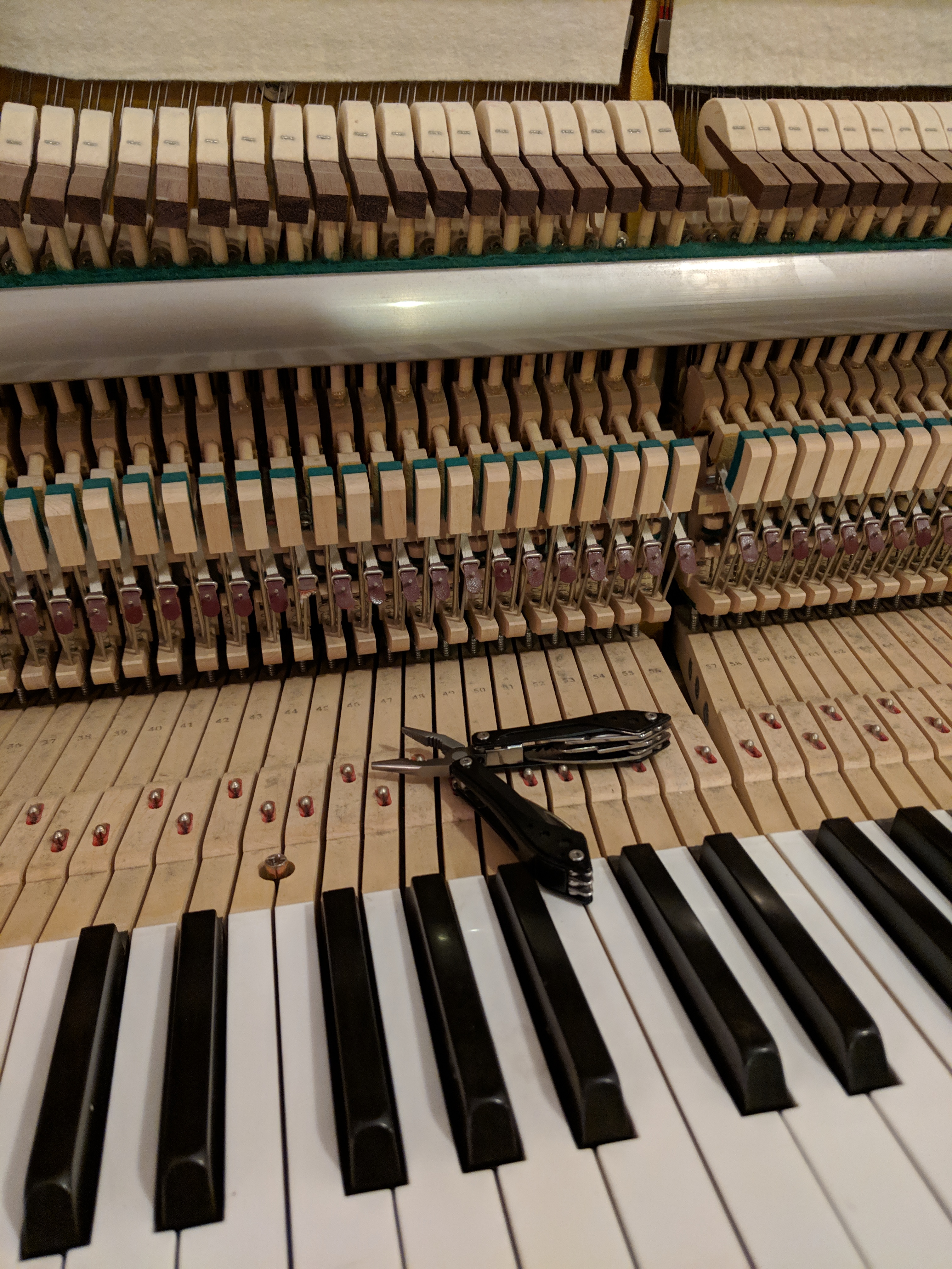 And there are always problems. Problems like bouncing piano keys. It was enough of an annoyance that I didn’t want to play anymore. I’ve been walking past without sitting down for months. But Brad is starting piano lessons again so it had to be fixed. One way to avoid complaining about something is to ignore it, but it is hard to ignore a bad piano. So I had to find a better way. I took the piano apart and found a way to adjust it. That was profoundly like finding joy by action and choice.